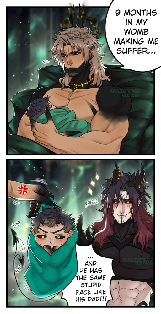 A meme ft. hissy Demon-Steel-Momma (@wildemaehne.bsky.social ๐Ÿ’•) and proud Nox-papa ๐Ÿคญ